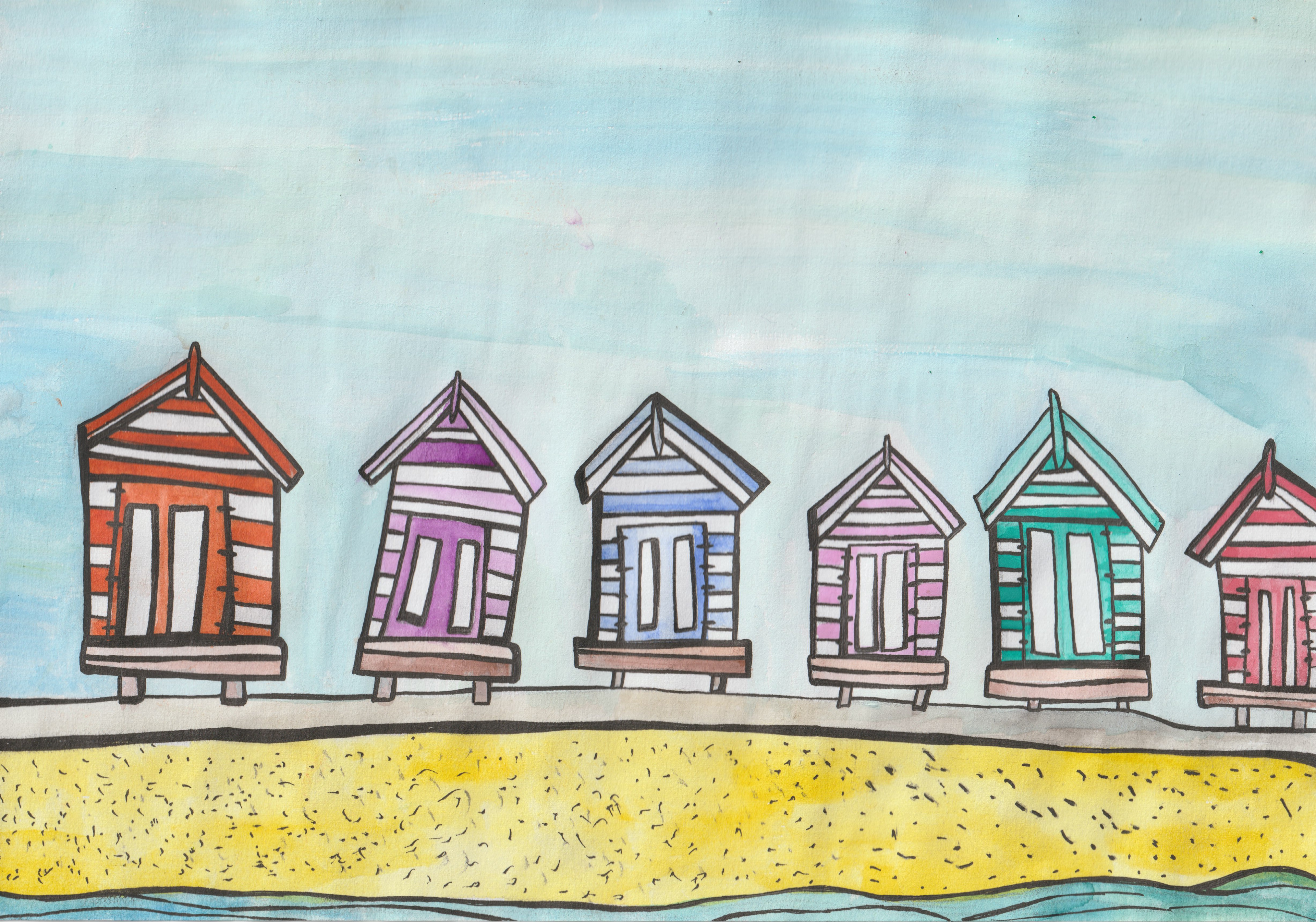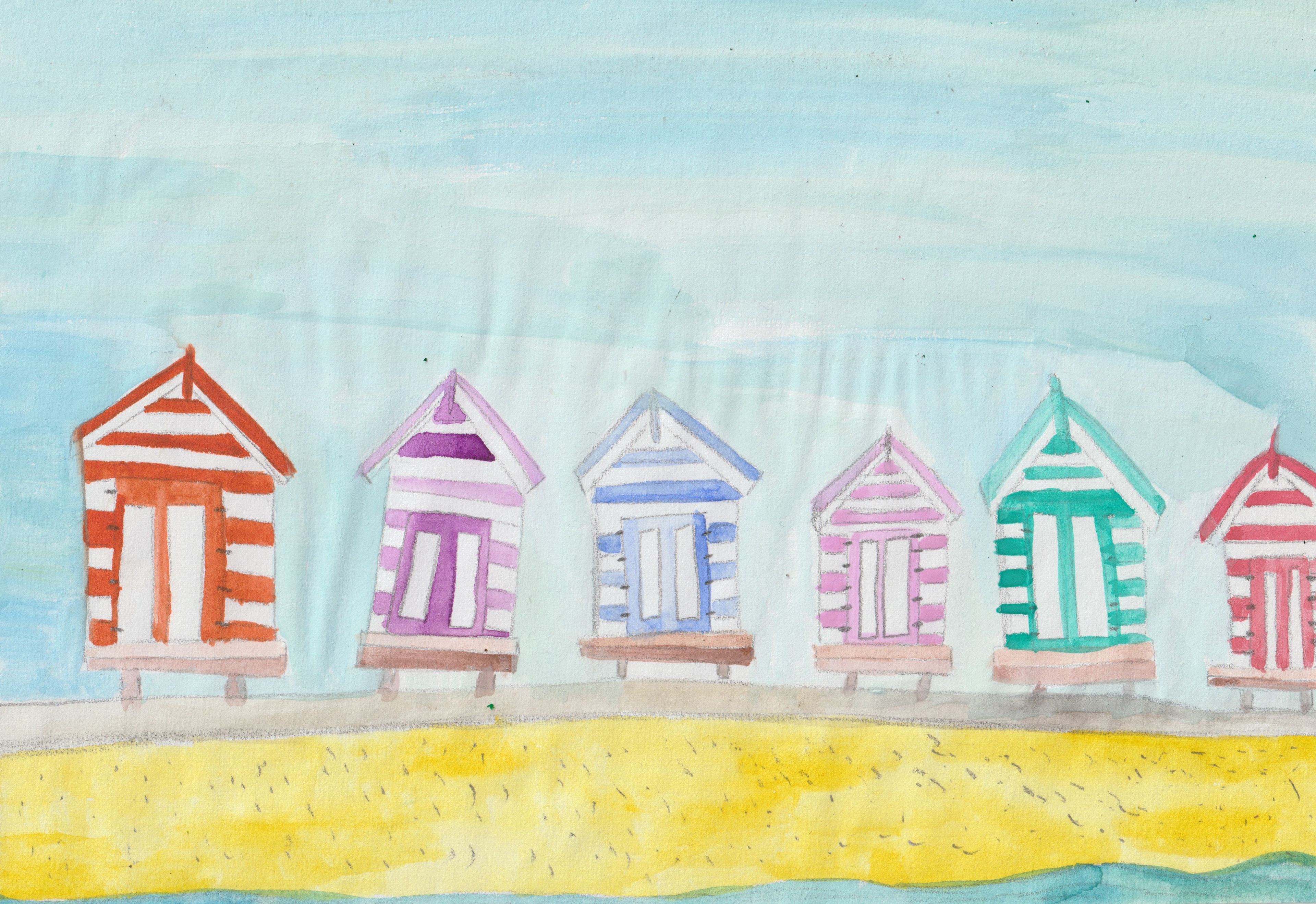 Beach Huts Illustration - Watercolour